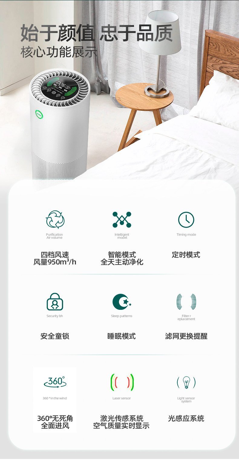 工作原理: 活性炭 負(fù)離子 HEPA技術(shù)
